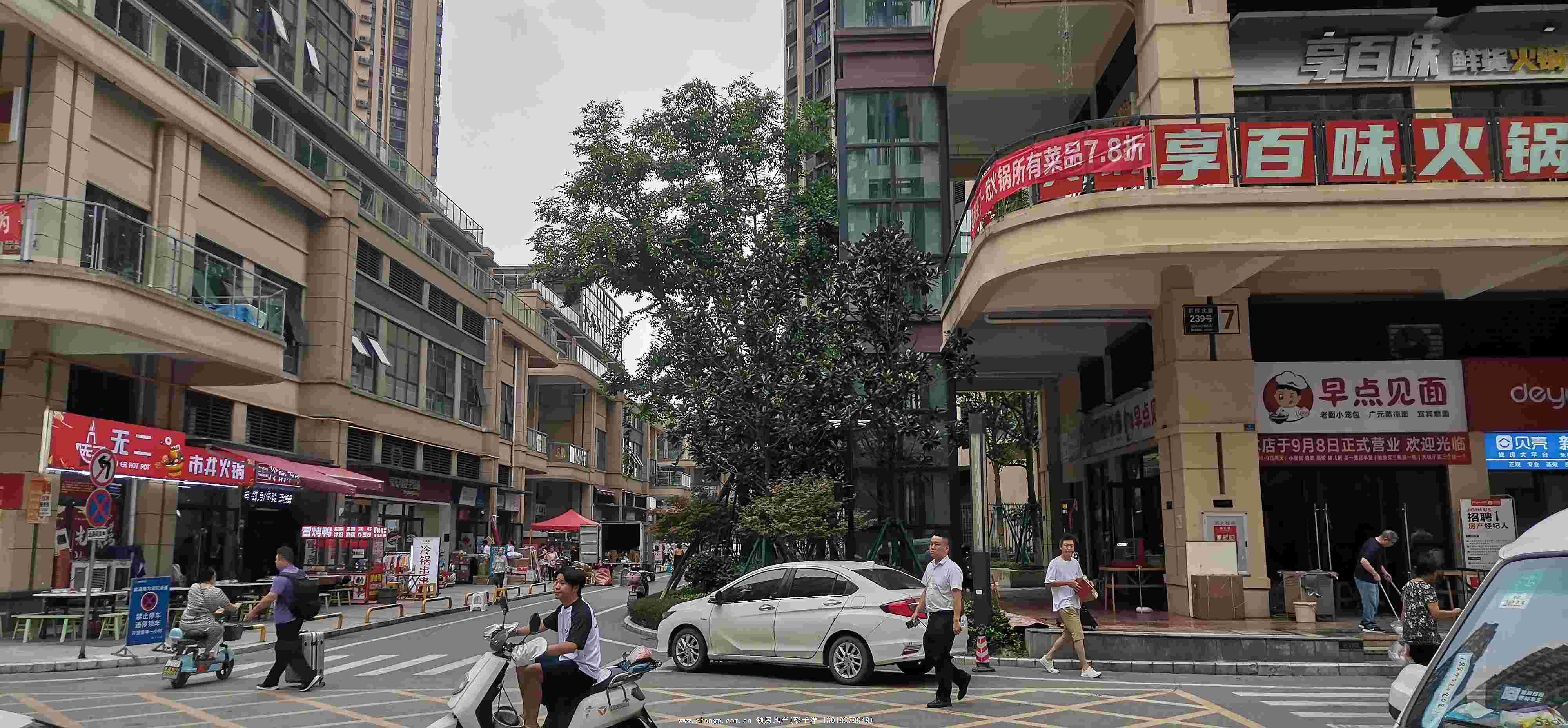 商铺户型方正、开间形象漂亮、万人社区、全业态餐饮商铺、大外摆、电梯口、